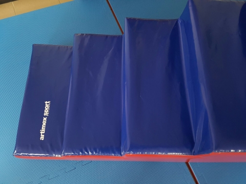 Beidseitig Turnmattenstoff (Polymar) mit einer weichen und angenehmen Prägung - Farbe: Blau und Rot