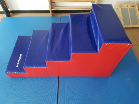 Treppe bestehend aus einem festen Schaumkern in einer strapazierfähigen, abwaschbaren Planenstoffhülle.