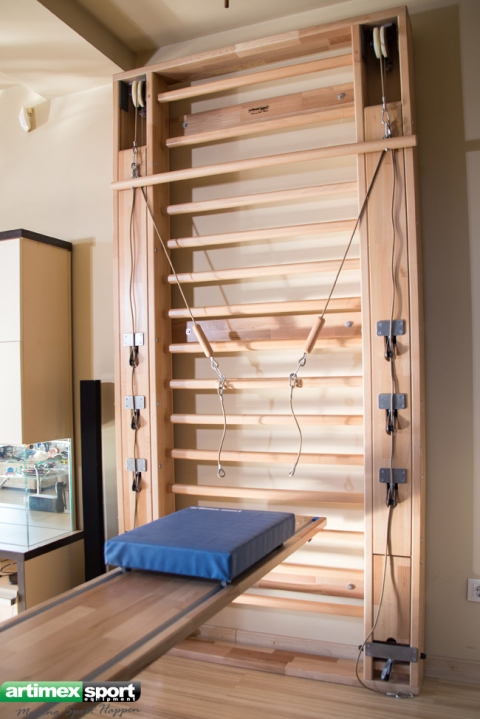 Das von Artimex Sport produzierte Fitnessgerät Supergym ist eine multifunktionale Sprossenwand, an welcher Sie mehr als 100 Übungen für alle Muskelgruppen trainieren können. (Deltamuskeln, Brustmuskeln, Trizeps, Trapezmuskeln, Beugemuskeln, Bauchmuskeln, Quadrizeps-Muskeln, Bizeps, der Musculus biceps femoris, Gesäßmuskeln u.s.w.).