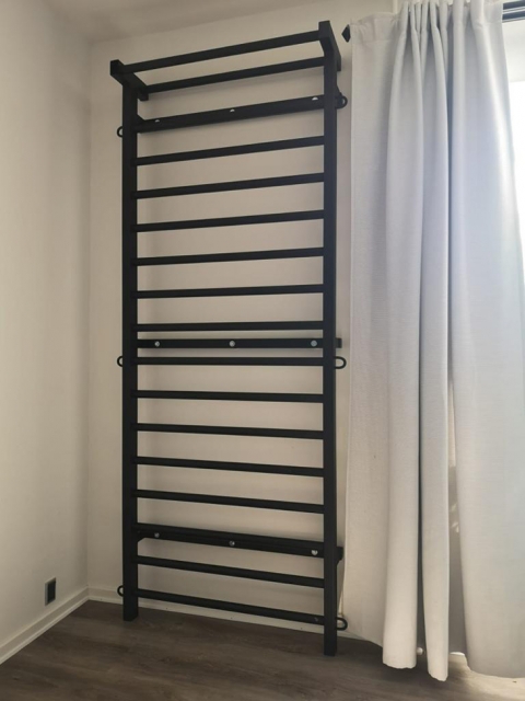Diese Sprossenwand kann auch im Außenbereich verwendet werden.