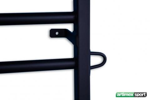 Jede Metall Sprossenwand hat an jede Wange 3 Ösen verschweist damit man verschiedene Sachen aufhängen kann
