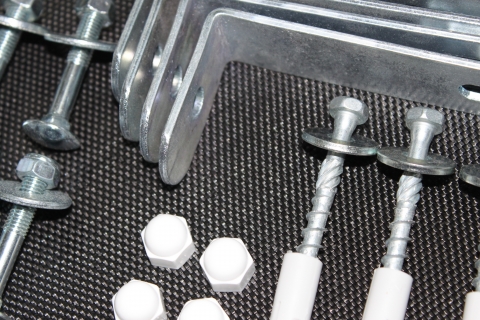 Die Sprossen werden mit den Wangen verschraubt (auf die hinteren seite der Sprossenwand).