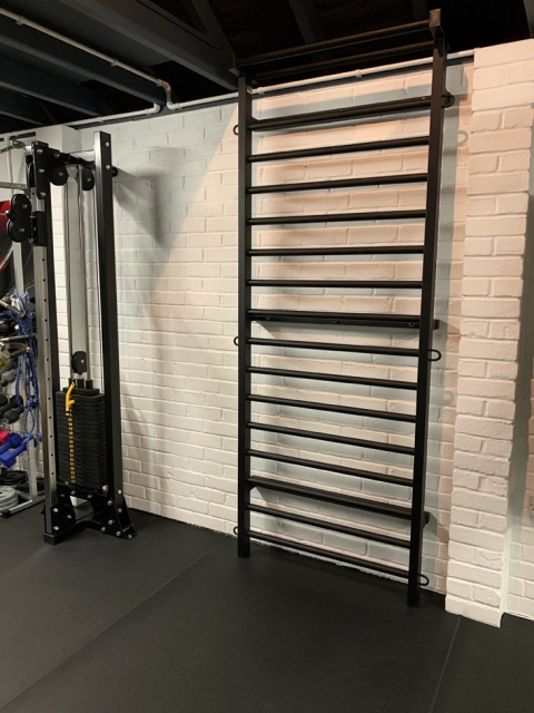 Diese Sprossenwand kann auch im Außenbereich verwendet werden.