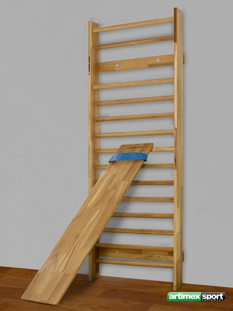 Espalier suédois gymnastique hauteur 2,3 m avec 14 barreaux conforme à la norme EN 12346, hautes résistances aux chocs et aucuns risques de déformation. Les barres latérales de l'espalier sont réalisées en bois de Chêne stratifiées/