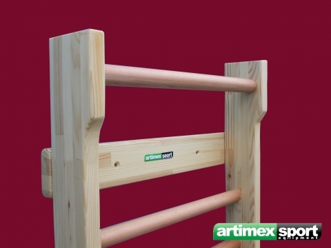 L'espalier (ou échelle de gymnastique) est réalisé en éléments stratifiés de pin, bois de hêtre ou chêne, de bonne qualité sans nœuds et bien séché. Ils contiennent 11 lames de hêtre laqué ou verni, barres rondes Ø 35 mm, avec les éléments de fixation contre le mur. Garantie 10 ans
