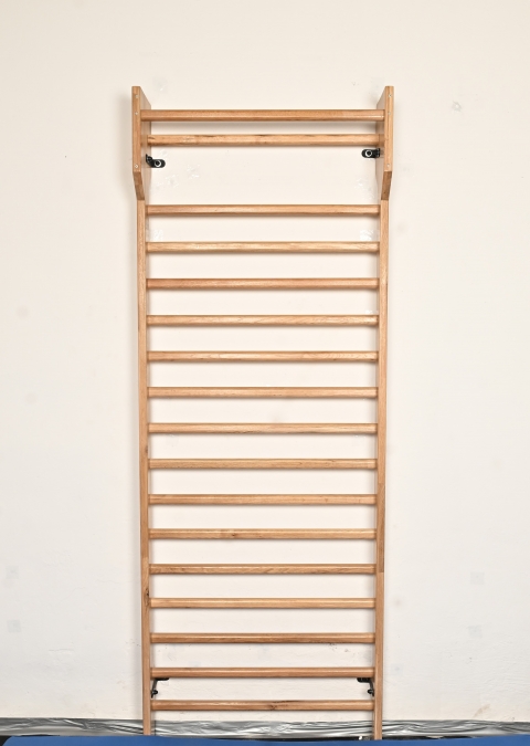 Espalier suédois en Hêtre pour gymnastique et/ou Physiothérapie avec 17 barreaux ovale section Ø 40x30 mm (Barreaux rondes ø 36 mm sur demande. Pas de frais supplémentaires) conforme à la norme EN 12346, hautes résistances aux chocs et aucuns risques de déformation. Il existe de nombreux exercices de souplesse, que vous pouvez faire sur l'espalier.