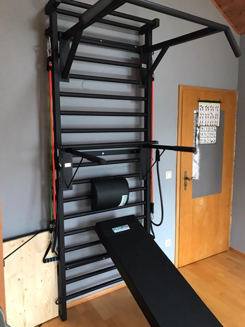Dei pioli, il primo e il secondo superiori sono posti sulla stessa linea orizzontale, per consentire l'esecuzione di alcuni esercizi di sospensione o di trazione cervicale passiva.