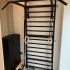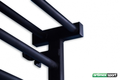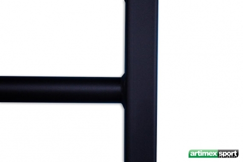 Spalliera svedese a campata singola, completamente in acciaio di colore nero, con pioli e staffe angolari in acciaiosaldati nella struttura portante.