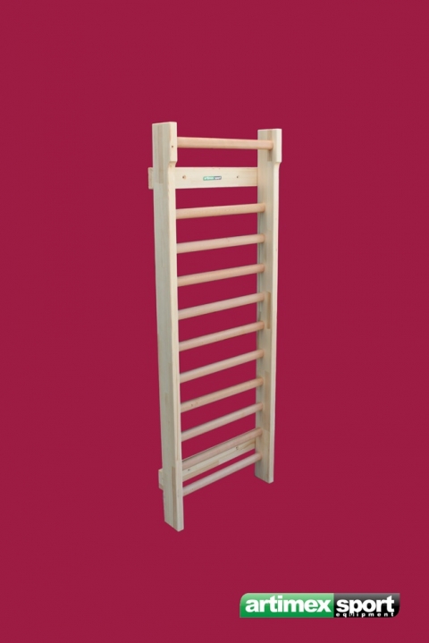Een wandrek speciaal voor kinderen. De zijbalken zijn van noestvrij pine vervaardigd. De ronde sporten zijn vervaardigd van beukenhout en in de zijbalken verlijmd en geschroefd.
