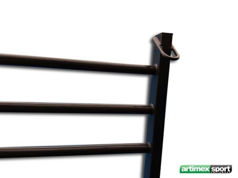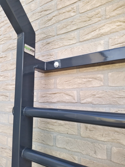 Het klimrek heeft 3 bevestigingsrin gen aan iedere zijde.