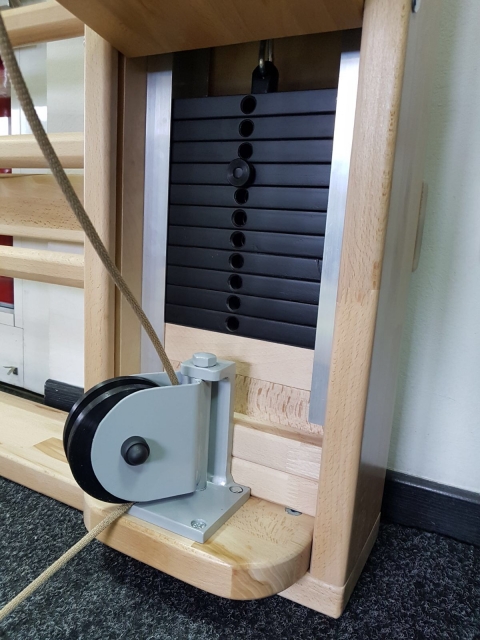 ) (11 voor elke zijde). Elk gewicht weegt 2 kg. De gewichten kunnen verwijderd of toegevoegd worden, daarom kan de balk met gewichten vanaf 4 kg tot 44 kg gebruikt worden (op verzoek, de aantal van gewichten kan groter zijn, de inrichting wordt gekalibreerd om te werken aan deze spanningen).