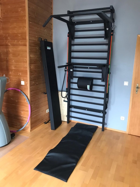 Artimex sport ribbstol har 2 gavlar i stål, 60 x 40 mm och 17 svarta runda stålribbor.