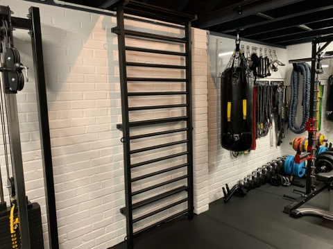 Stadig montering på väggen med 8 metall vinkeljärn (4 st. längst upp, 2st. i mitten och 2 st. längst ner).